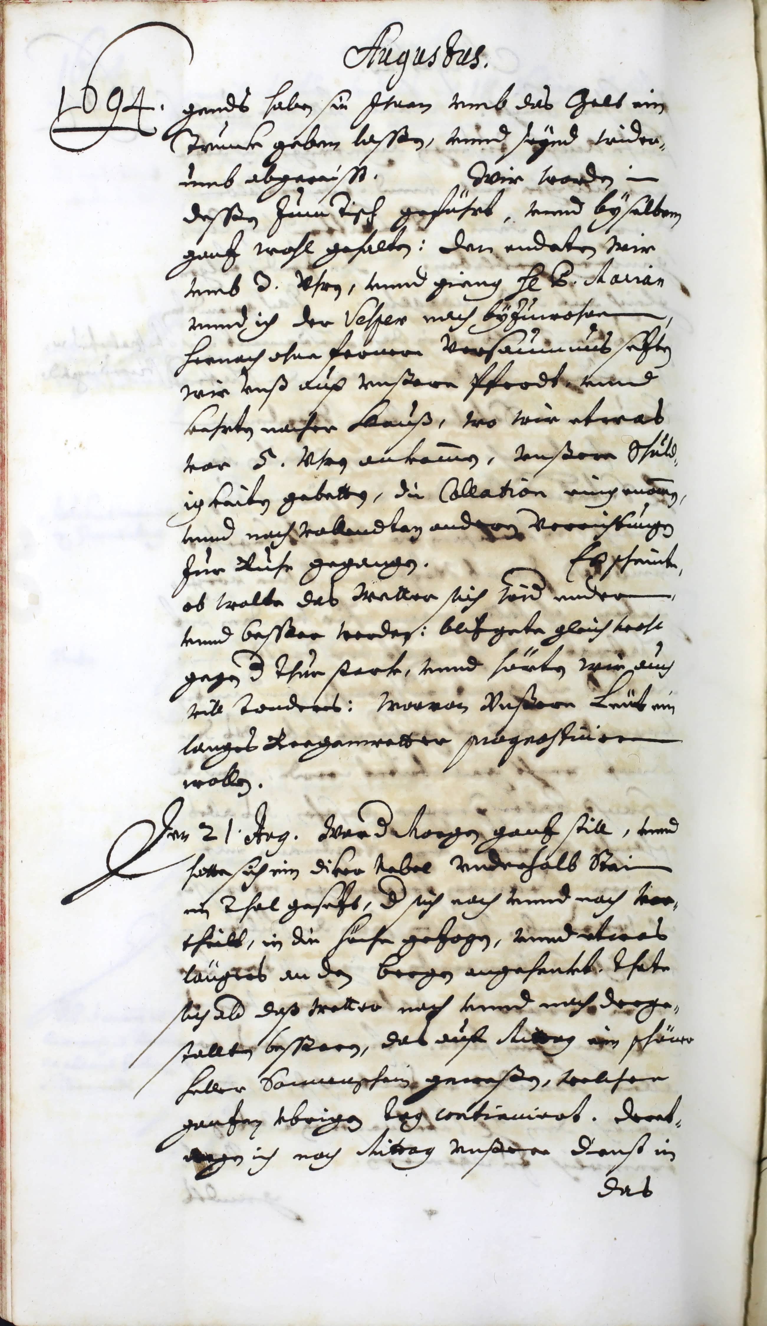 Den 21. Augusti. War der Morgen ganz still, vnnd